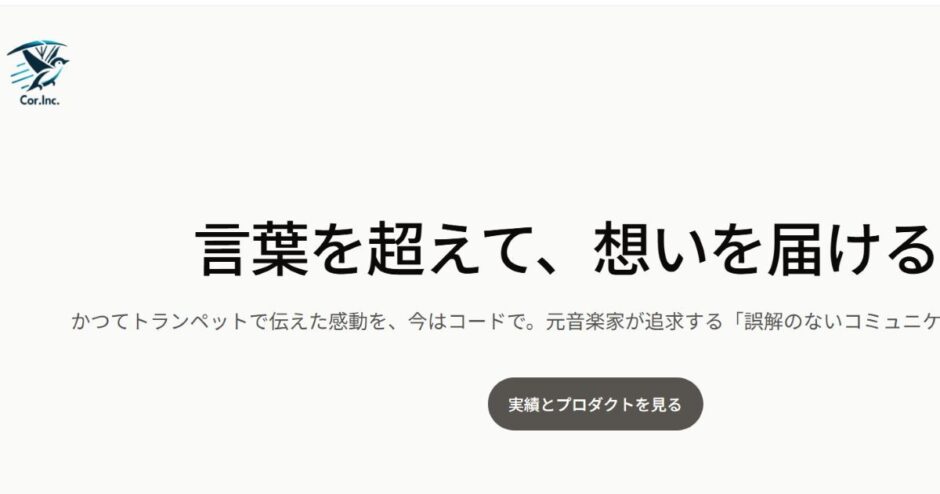 テクノロジーの進化が加速する現代において、単にシステムを導入するだけでなく、いかに「人の想い」を正確に伝え、形にするかがビジネスの成否を分ける鍵となります。Cor.incは「競争ではなく共創」をミッションに掲げ、最新技術を駆使して社会課題の解決に挑むスタートアップ企業です。元音楽家という異色の経歴を持つ代表の視点から生まれるサービスは、技術的な卓越性だけでなく、コミュニケーションの本質を突いた独自の価値を提供しています。